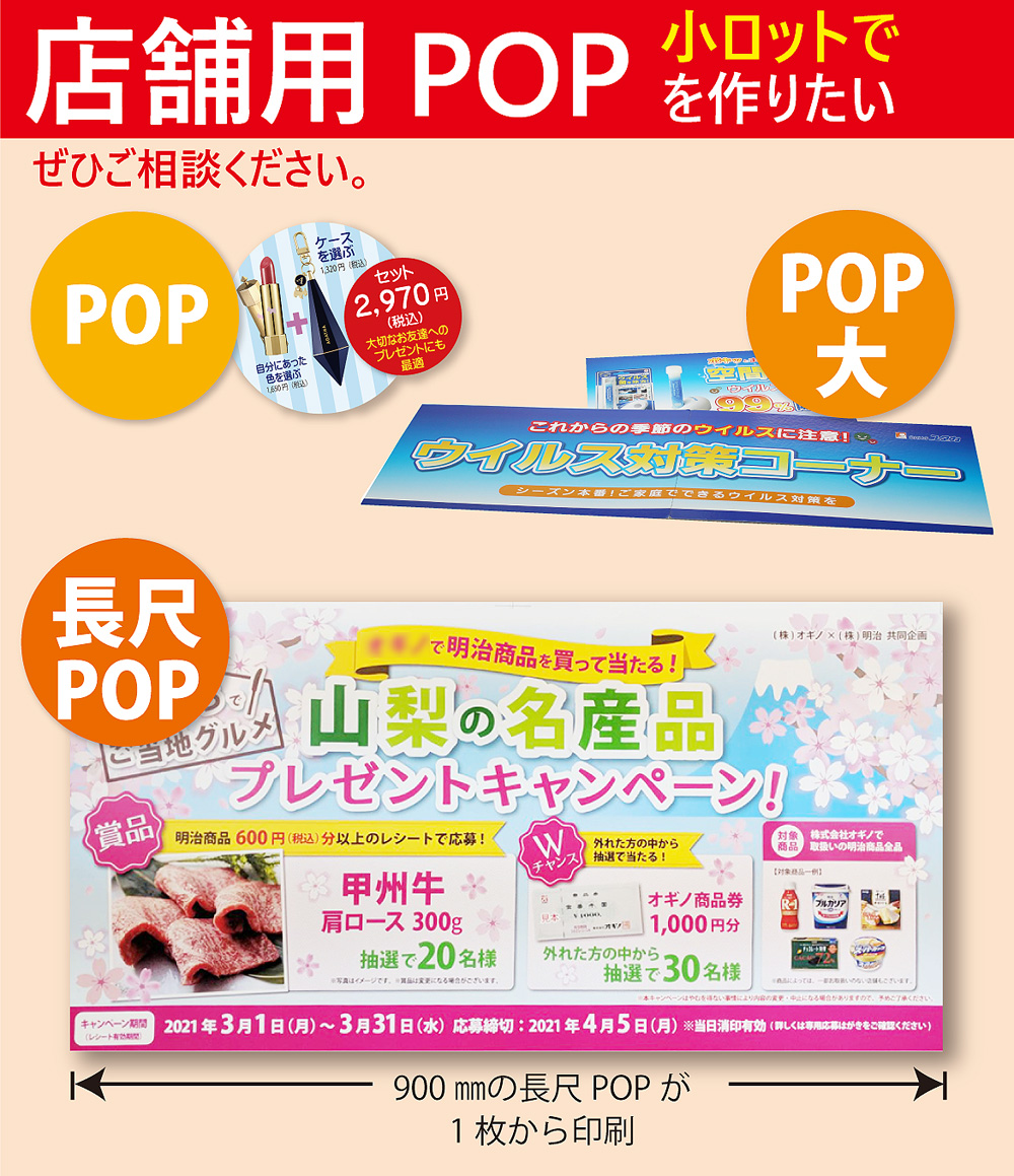 | 長尺POP 片面カラー 1枚 3300円(税込)~ |